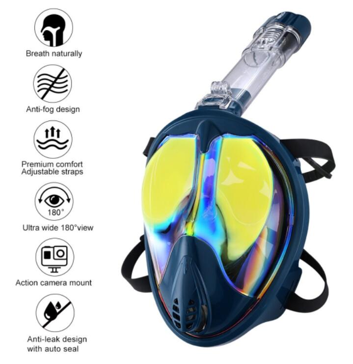 This artifact upgrade for full face snorkel mask can assemble gopro camera, redefine submerged floating, which can make your nose breath natural in underwater , meanwhile you will be have more space to swim at the same time to record every wonderful moment.It will provide you with more smooth breath security, even if you are in rapid diving, be badly in need of a large amount of oxygen, it is fully qualified for.With 180 - degree wide Angle of view, at the same time, it also has strong physical anti-fog effect, let you keep the view clear, anytime and anywhere under water to avoid accident happening.