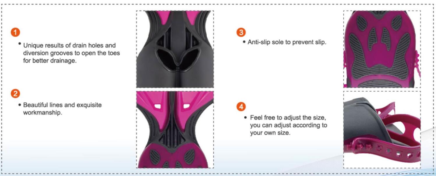 Product description: Designed for adults and children, unique mermaid design allows people to have fun and feel comfortable in the water. Comfortable TPR foot pocket prevents skin irritation. Quick release foot strap allow feet to be quickly removed from the fin for safty. Build leg strenth, increase water confidence. Perfect for swimming traning and practice, impove body balance in the water.