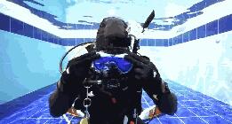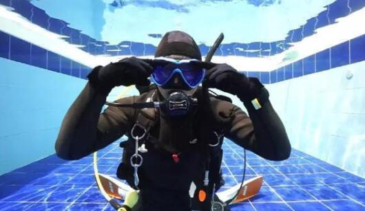 Simulate the water entering the diving mask, hold the upper lip of the mask to form a fold (or directly lift the upper lip with your finger), and fill the mask with water slowly. You can lower your head slightly, let the water fill along the diving mask, to avoid direct contact with the skin, causing discomfort.